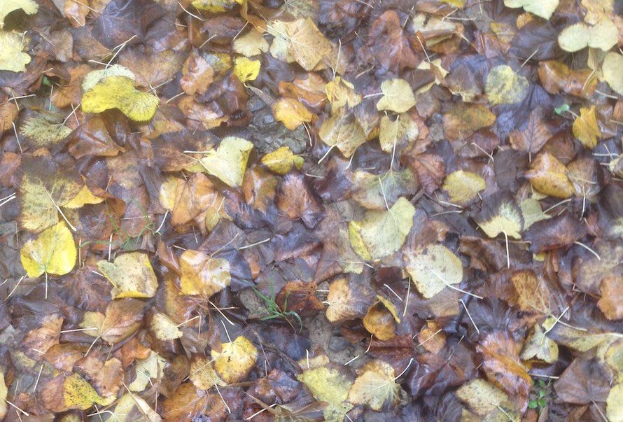 La terra sotto i miei piedi non si vede perché tutto resta coperto da queste larghe foglie gialle e marroni inzuppate di pioggia.